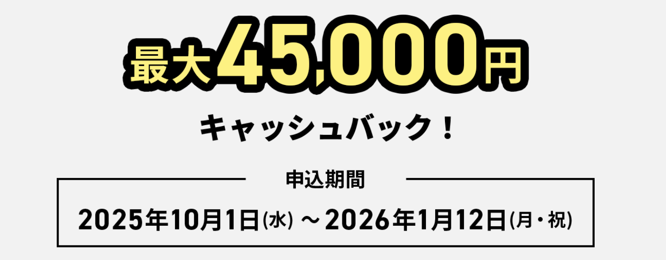 - 新規入会&利用で最大45,000円キャッシュバック!※2